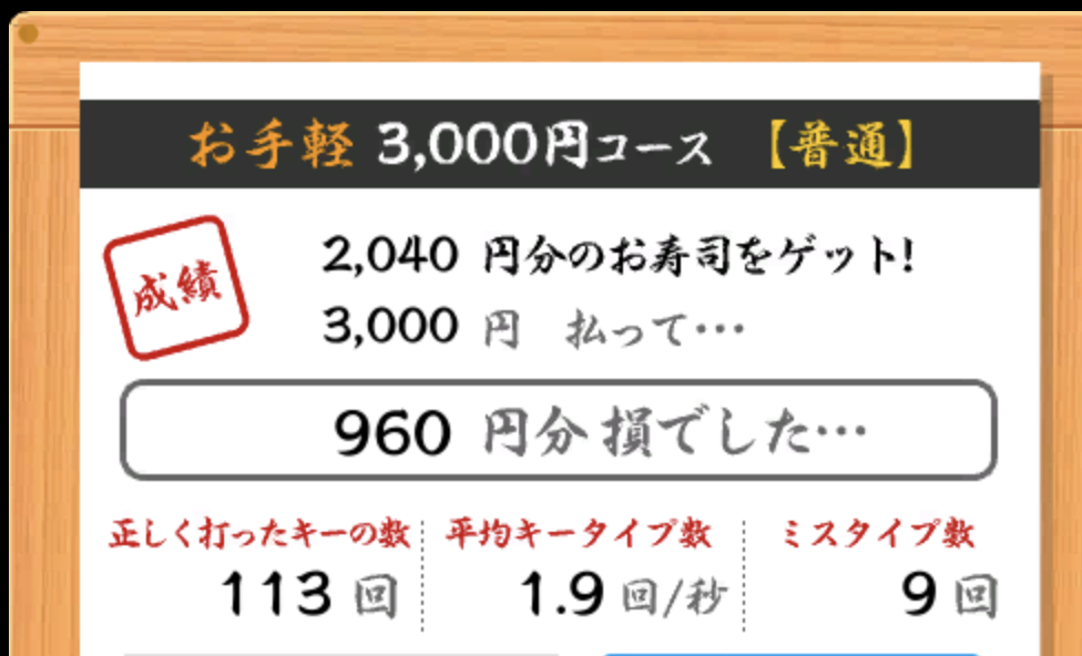 どれくらいいけるようになったかを寿司打ちをいうものでたまに試しています。